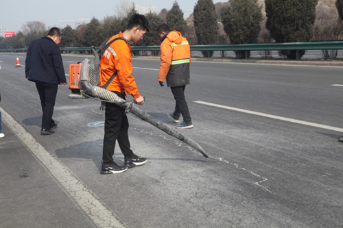 裂縫邊緣有破損等現(xiàn)象時(shí)進(jìn)行擴(kuò)縫處理 專用吹縫設(shè)備吹縫清縫