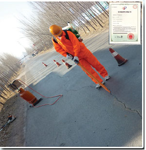 選擇RBS膠條式灌縫膠,將膠條插入火槍口中,對準裂縫,迅速融入裂縫中。
